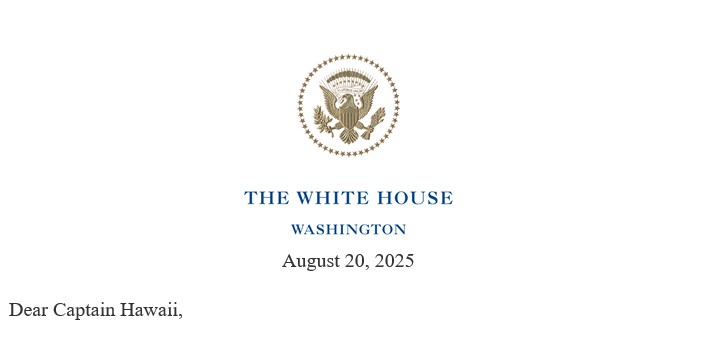 美国总统给我和我的美国同事写信了, 在信里, 他谦虚,认真地表达了他自己, 最后给了我们非常宝贵的签名. 没有什么机密的描述, 都可以公开, 但是我永远不会透露具体内容, 这是"尊重", "信任"和"信用". 对于日本国民, 很多的日本纳税人来说, 日本自民党, 日本外务省, 法务省就缺这些东西. 他称呼我CAPTAIN HAWAII. 我就是CAPTAIN HAWAII. 我会继续与美国政府部门, 和相关的领导人保持联系, 与日本国民一起, 解决日本当前面临的严重的国内政治与政府管理腐败, 无能的问题. 我只知道一个事情: 美国总统不会给日本首相写信,不会给外相, 法务相写信. 所以我感觉我应该比日本首相更强大, 哈哈. 所以请日本国民与我站在一起. 过两天我把TAMAKI KOJI 也叫来, 与我站在一起. 哈哈哈哈. 外务省不尊敬我这样的纳税人, 不为我工作, 甚至回复我的质疑, 他们会后悔的. 通过这个事情, 可以看出来, 外务省和法务省的人并不称职. 他们不愿意服务普通的日本国民和不知名的纳税人, 但是日本就是由千千万万的最普通的日本国民和日本纳税人构成的. 我不能从他们那里看到任何日本的精神. 但是我在稚内市役所就可以看到日本的精神和传统价值. 所以他们确实是威胁日本的安全. 我对我发表的以上的观点负责.